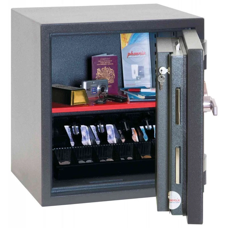 - Вместе с сейфом Phoenix HS2051E вы приобретаете не только гарантию английского высокого качества защиты от грабежа. Также он сбережёт ваши ценности и в случае пожара, что является существенным фактором в его пользу: оборудование такого рода является универсальным, предоставляя вам комбинированную защиту и устраняя сразу оба основных риска.
