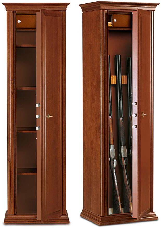 – в комплект поставки входят 4 деревянных полки, а также деревянные ложементы для хранения 7 ружей (одновременно и полки и ложементы использоваться не могут);